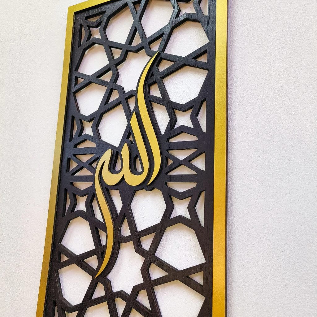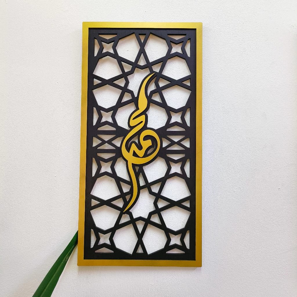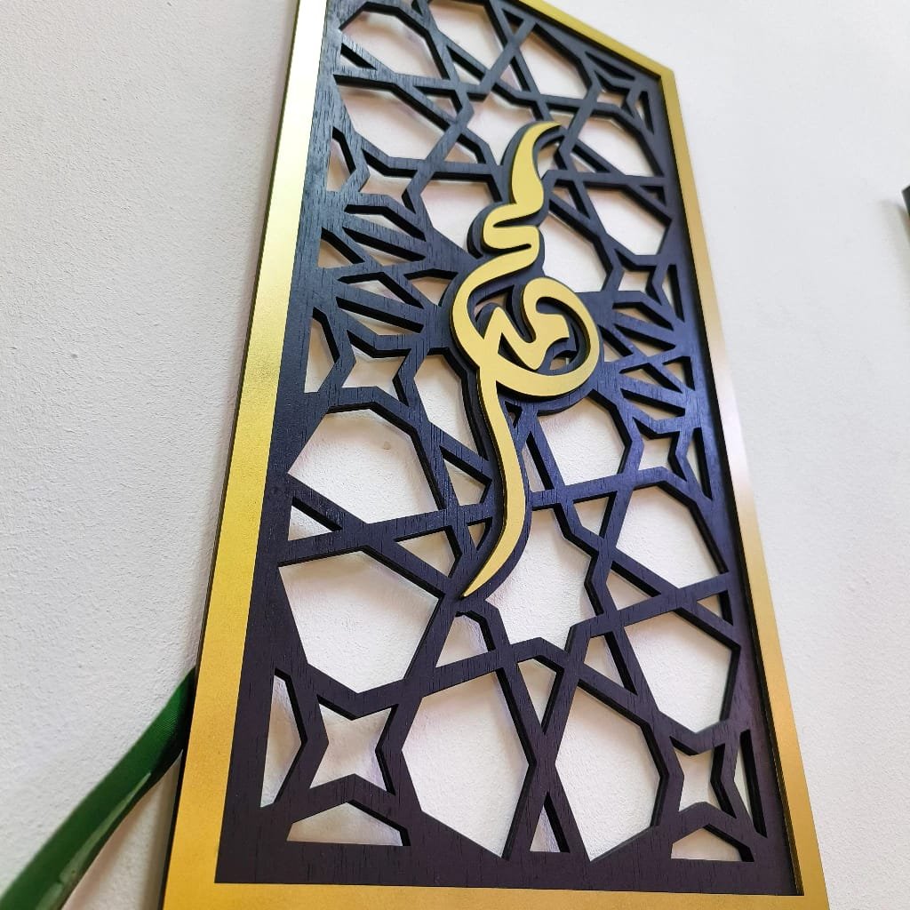 “Allah ﷻ” on one panel and “Muhammad ﷺ” on the other
