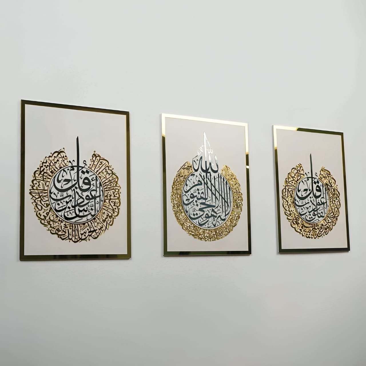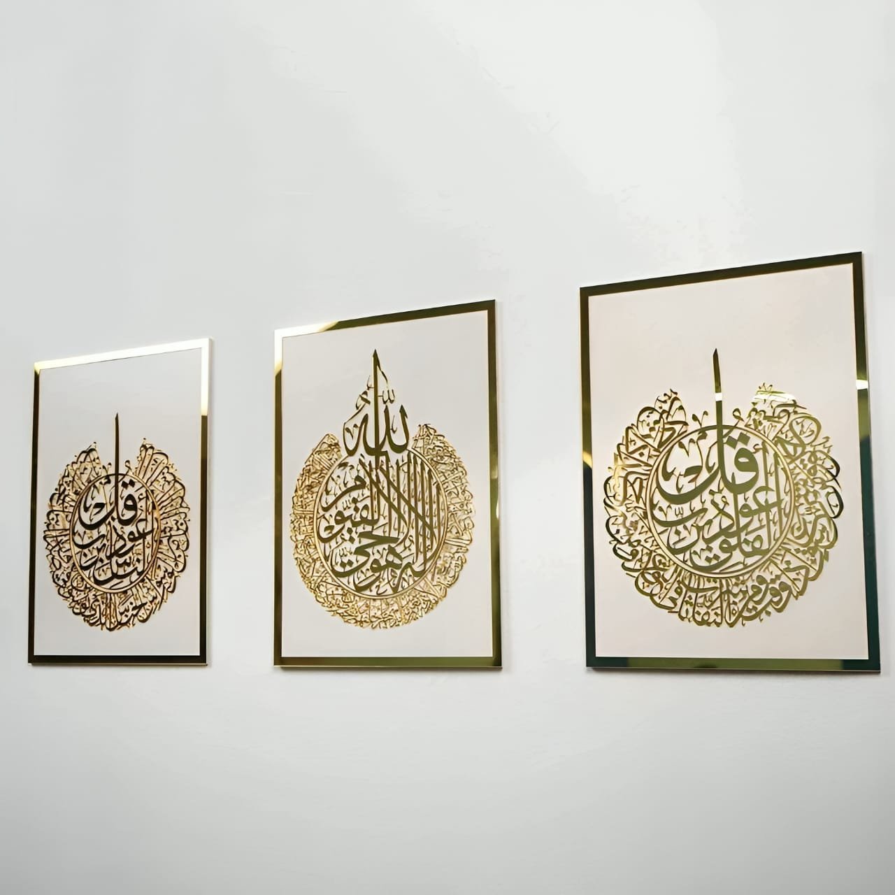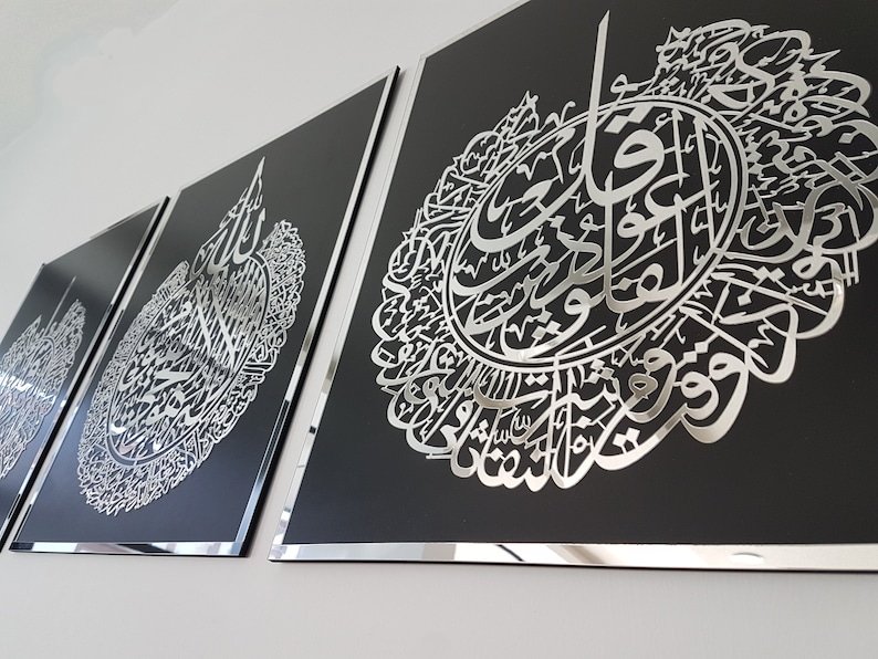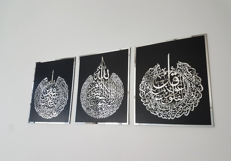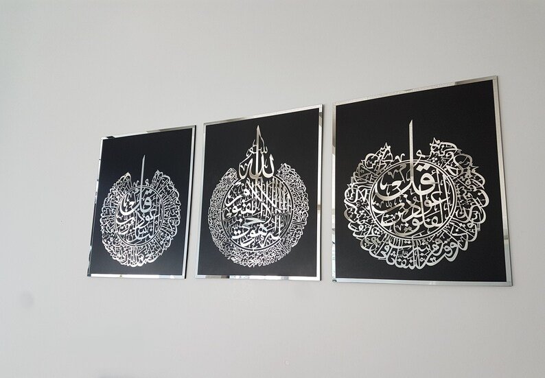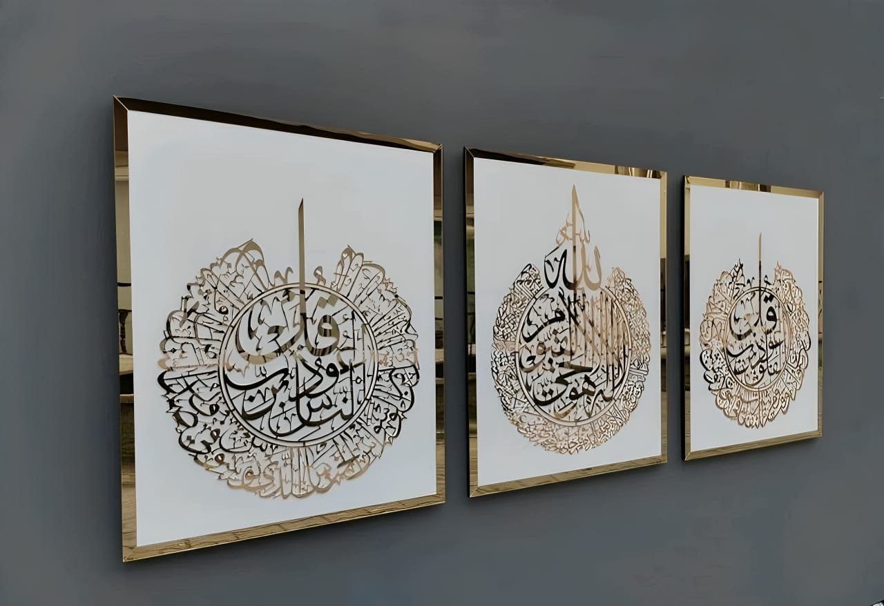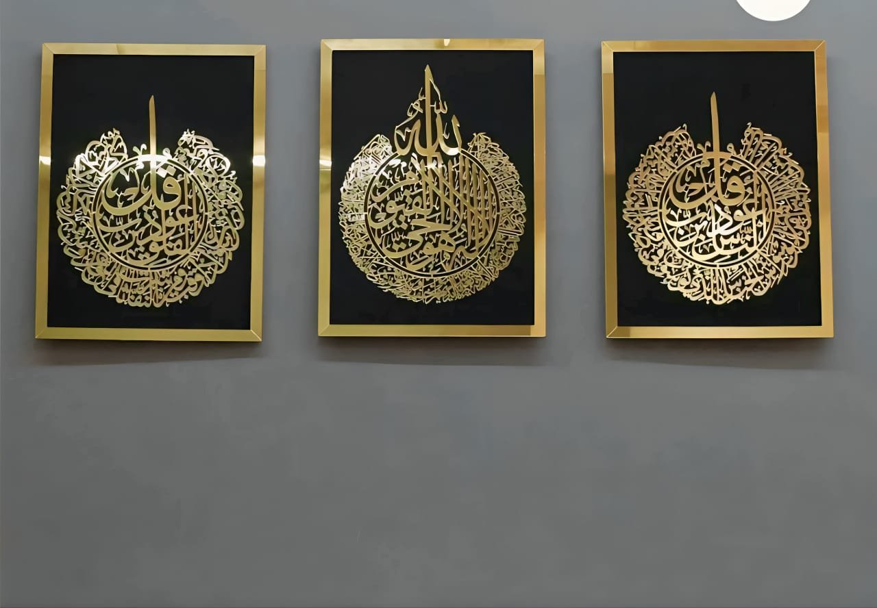 Ayat Al Kursi | Surah Al Falaq | Surah An Nas Set Of 3 Arabic Calligraphy Wall Art