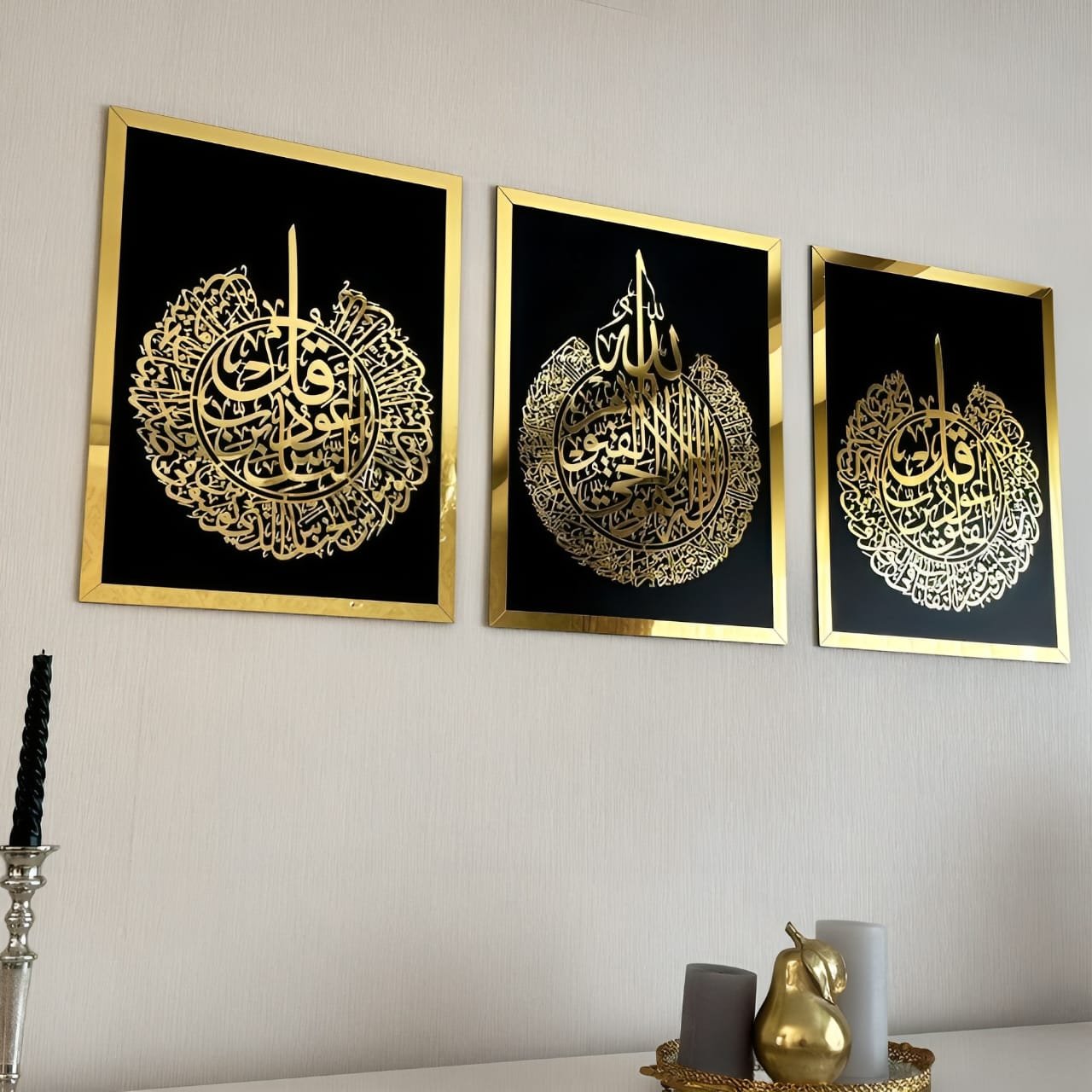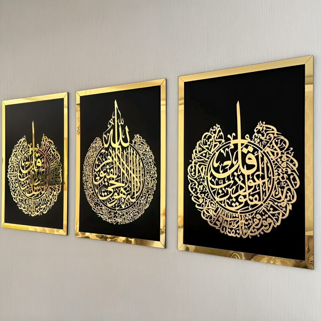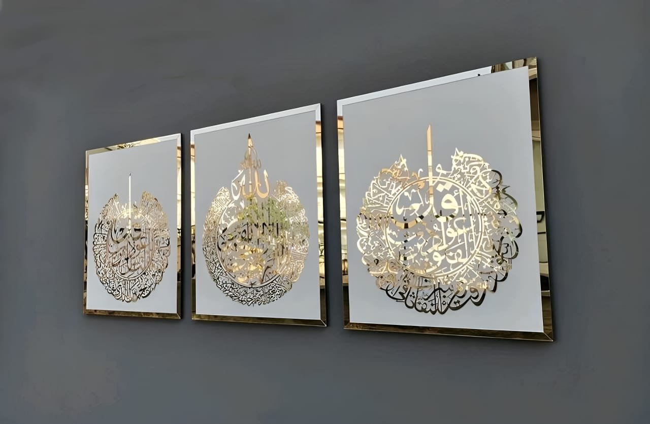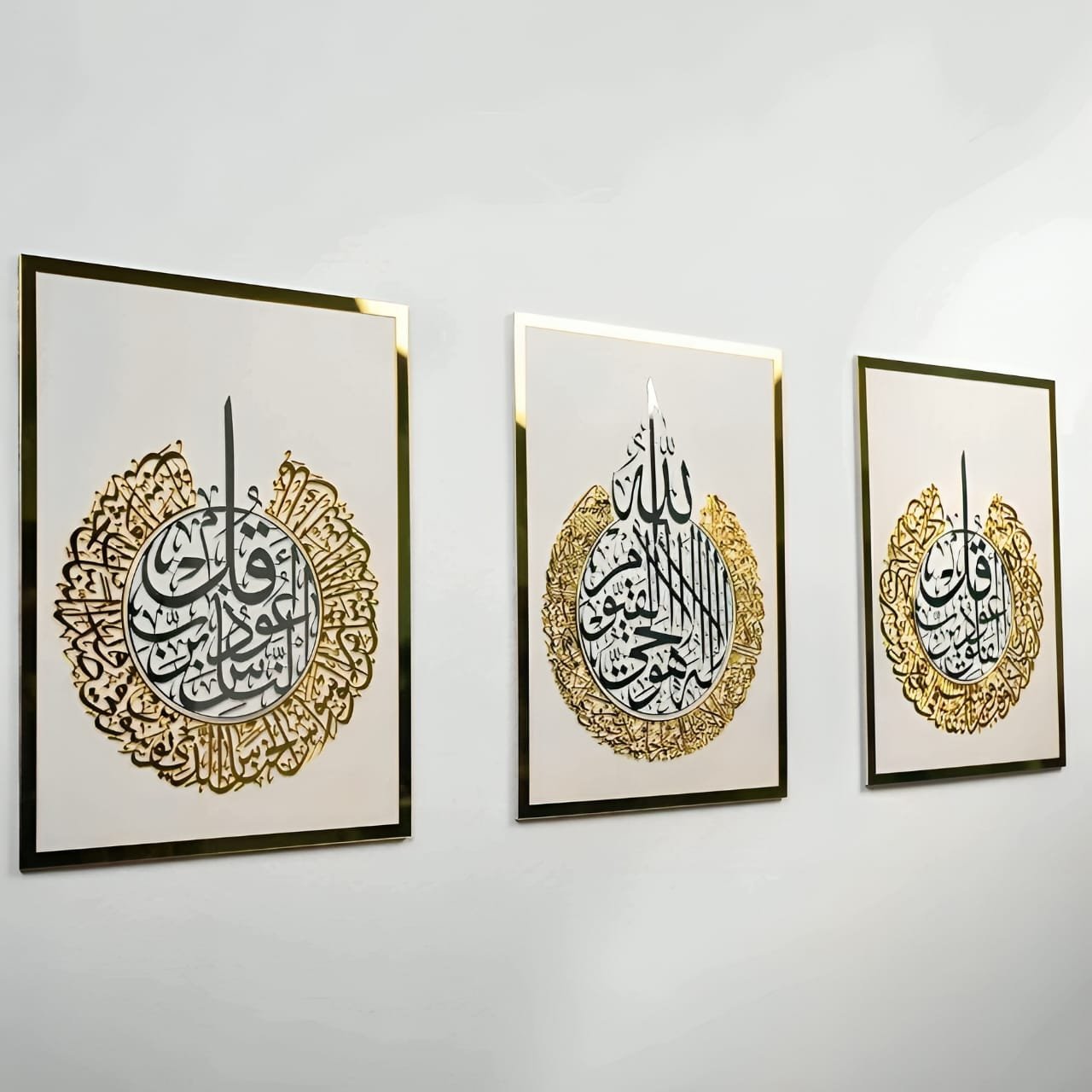 Ayat Al Kursi | Surah Al Falaq | Surah An Nas Set Of 3 Arabic Calligraphy Wall Art