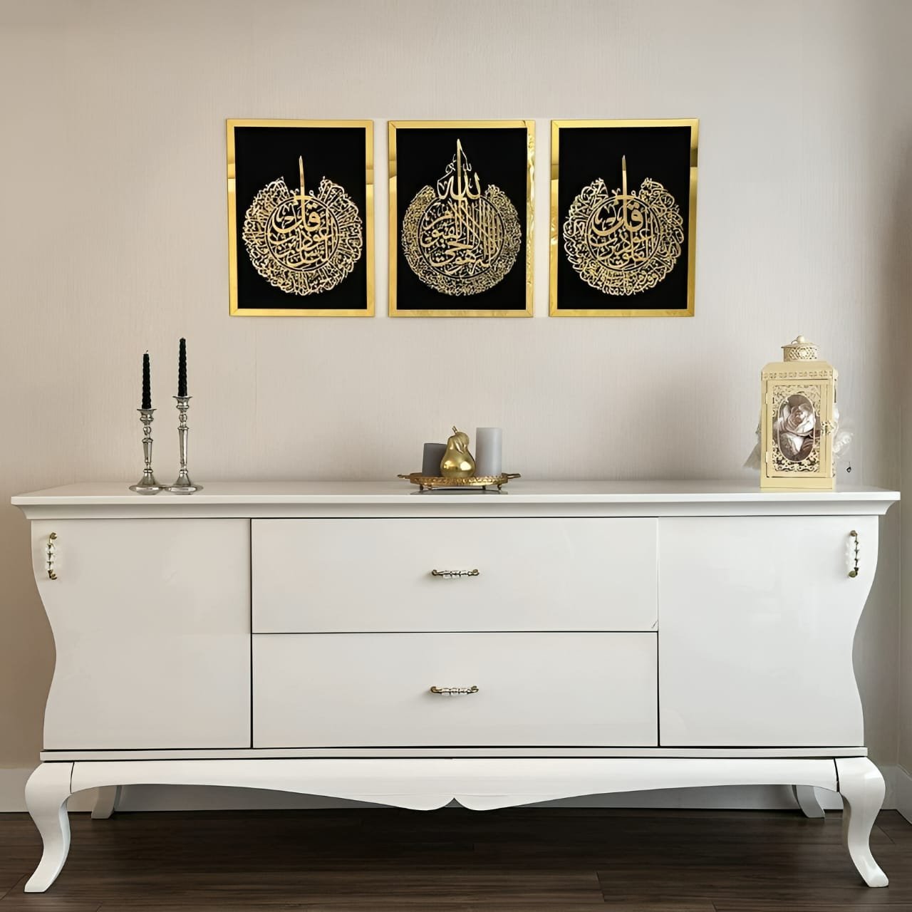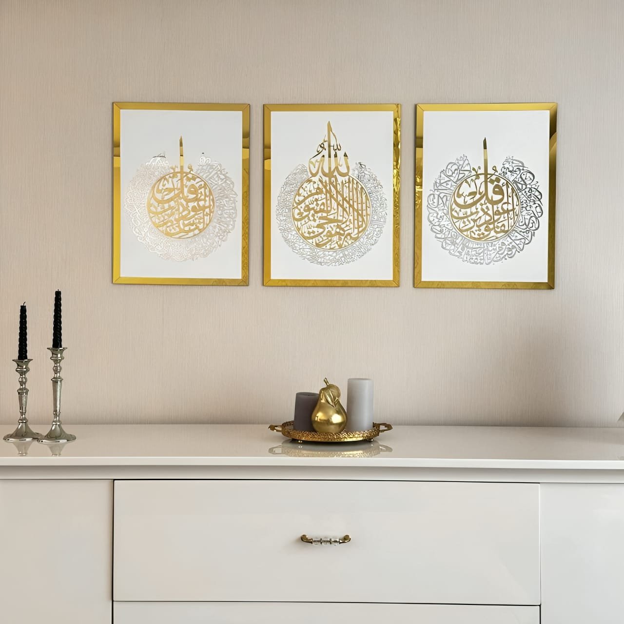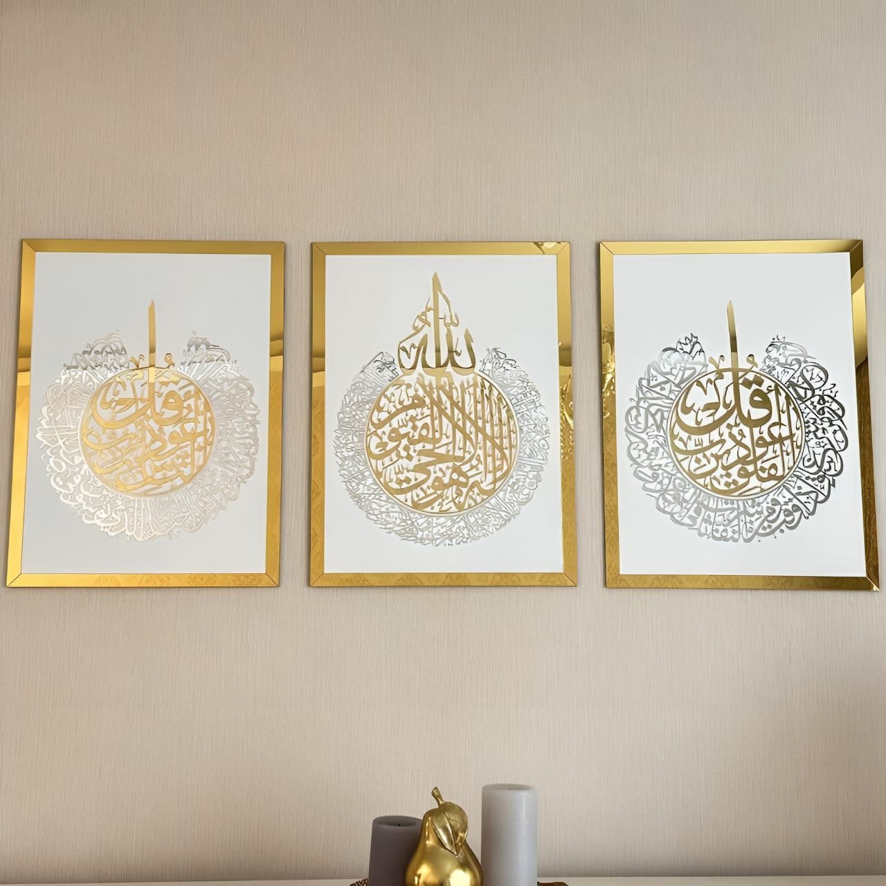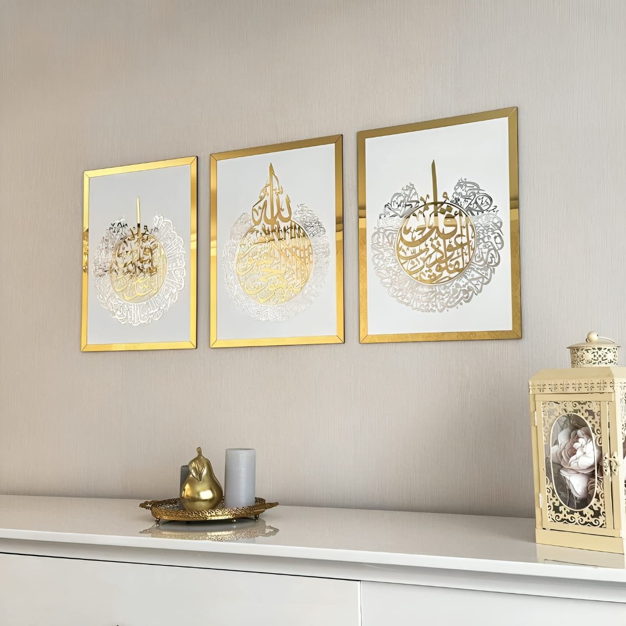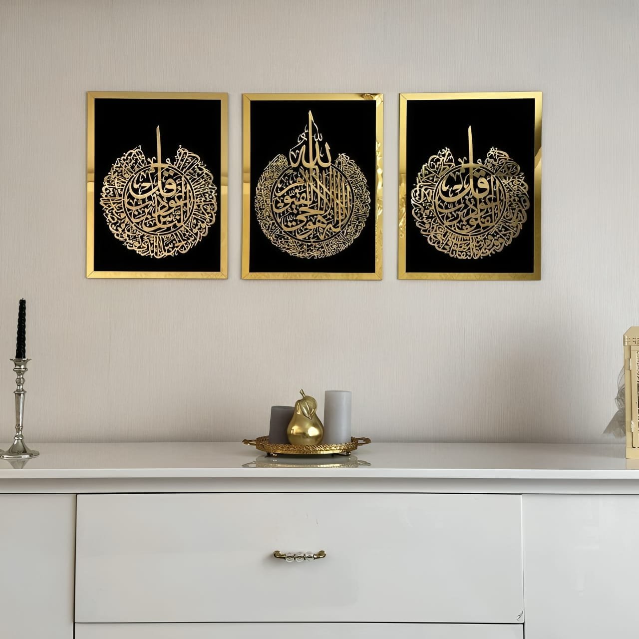 Ayat Al Kursi | Surah Al Falaq | Surah An Nas Set Of 3 Arabic Calligraphy Wall Art