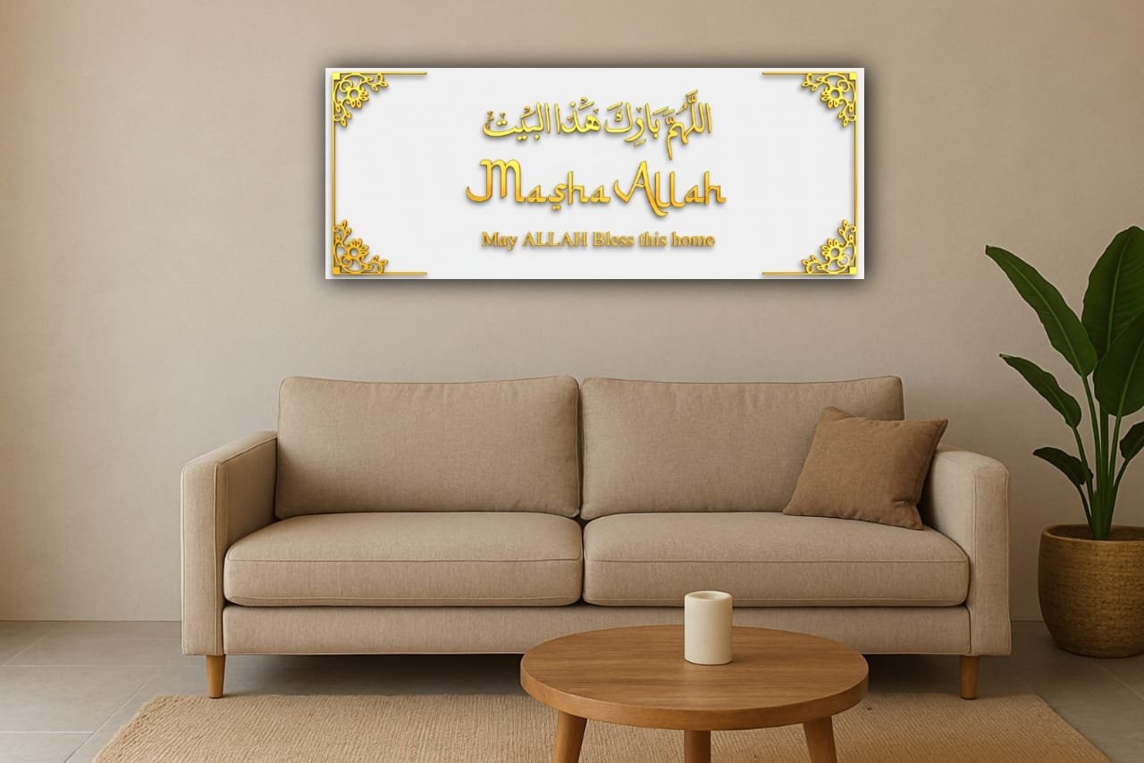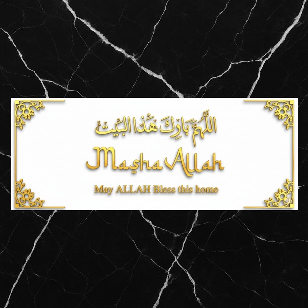 Enhance your home’s beauty and spirituality with this elegant Gold Acrylic “Masha Allah” wall plaque. Designed with a luxurious golden finish on premium acrylic, it features the Arabic phrase اللهم بارك هذا البيت (Allahumma barik haza al-bayt) meaning “May Allah bless this home.” Perfect for entrance walls, living rooms, or gifting on housewarming occasions, this decor piece brings both charm and blessings to your home.