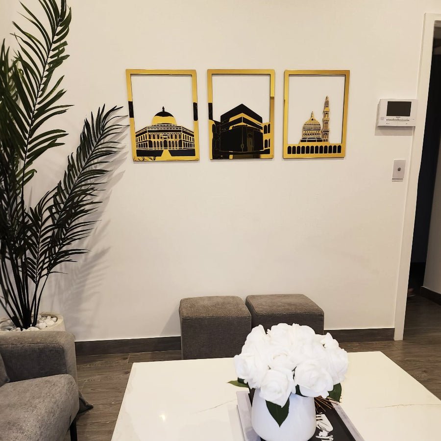 Masjid Al Aqsa, Masjid Al-Haram & Masjid An-Nabawi Wooden Acrylic Islamic Wall Art Set