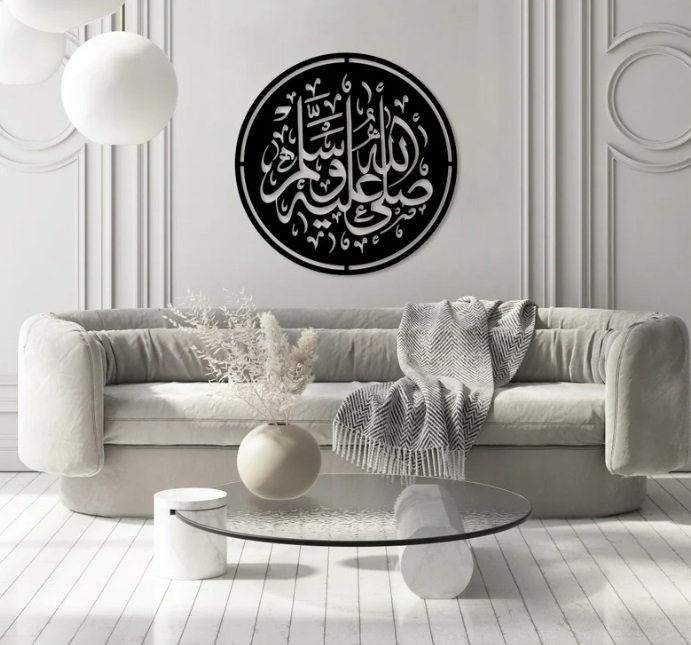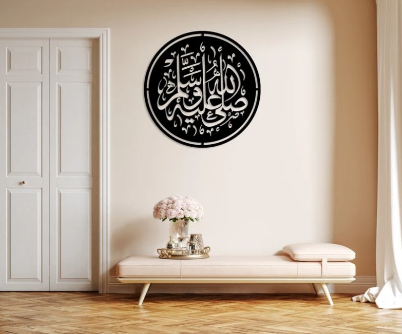 This art is lightweight, easy to hang, and perfect for homes, offices, or prayer spaces, adding a touch of Islamic spirituality and reverence to the environment. The combination of sacred text and modern design makes it both a spiritual and stylish piece of decor, ideal for anyone seeking to honor the Prophet Mohammad (ﷺ) in a contemporary, artistic way.