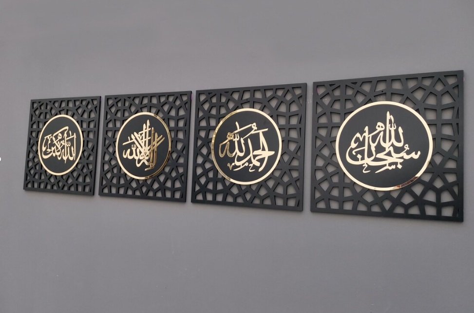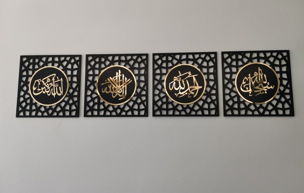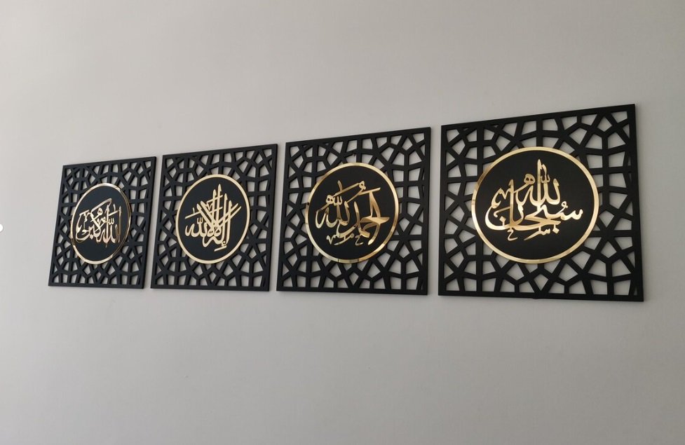 Subhanallah, Alhamdulillah, La ilaha illallah, AllahuAkbar, Islamic wall art, Wooden Islamic wall art, Islamic gifts, ramadan decor, ramadan gifts, eid gifts, Islamic home decor, Islamic wall decor, Islamic calligraphy, Qul Surah, gift for home, housewarming gift.